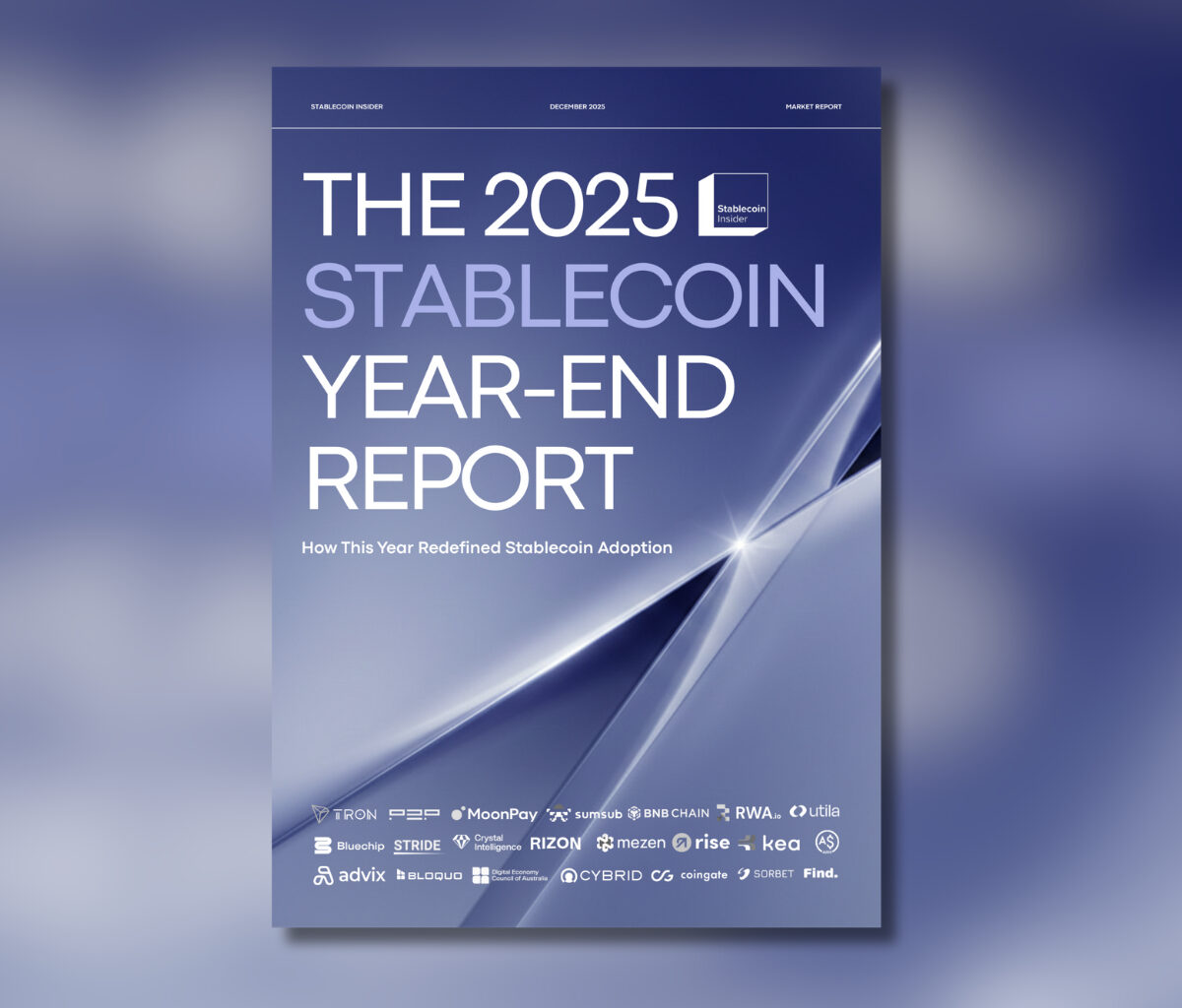 To make this report as thorough as possible, Stablecoin Insider partnered with companies from across the stablecoin ecosystem, including issuers, infrastructure providers, compliance specialists, and market participants, including: Tron, P2P, MoonPay, SumSub, BNB Chain, RWA.io, Utila, BlueChip, Stride, Crystal Intelligence, Rizon, Mezen, Rise, Kea, AUDD, Advix, Bloquo, Digital Economy Council of Australia, Cybrid, CoinGate, Sorbet, Find.