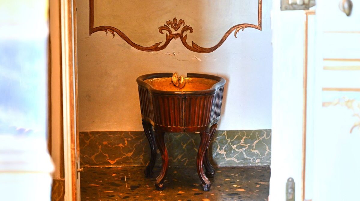 The first evidence of the bidet in Italy comes around 1720. Evidence of its widespread adoption comes in the second half of the century when the Queen of Two Sicilies, Maria Carolina of Habsburg-Lorraine, demanded the installation of the devices—then a mere basin with leglike supports—in her private rooms at the Palace of Caserta.
