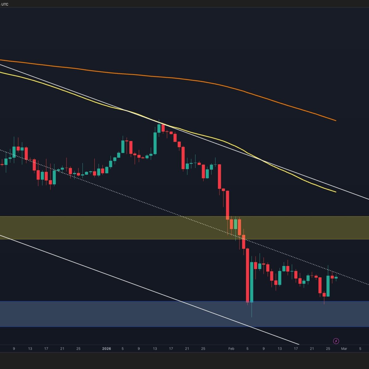 If Bitcoin can secure a strong daily close above this mid-boundary with follow-through buying, the structure shifts. In that case, the next logical magnet sits in the $75K–$80K supply region. That area contains prior distribution and would likely be the next test of strength. On the other hand, if price fails here and loses the $66K–$67K short-term support region, the market risks rotating back toward $62K. A breakdown below that level would reopen the path toward the lower boundary of the channel and confirm continuation of the larger downtrend.