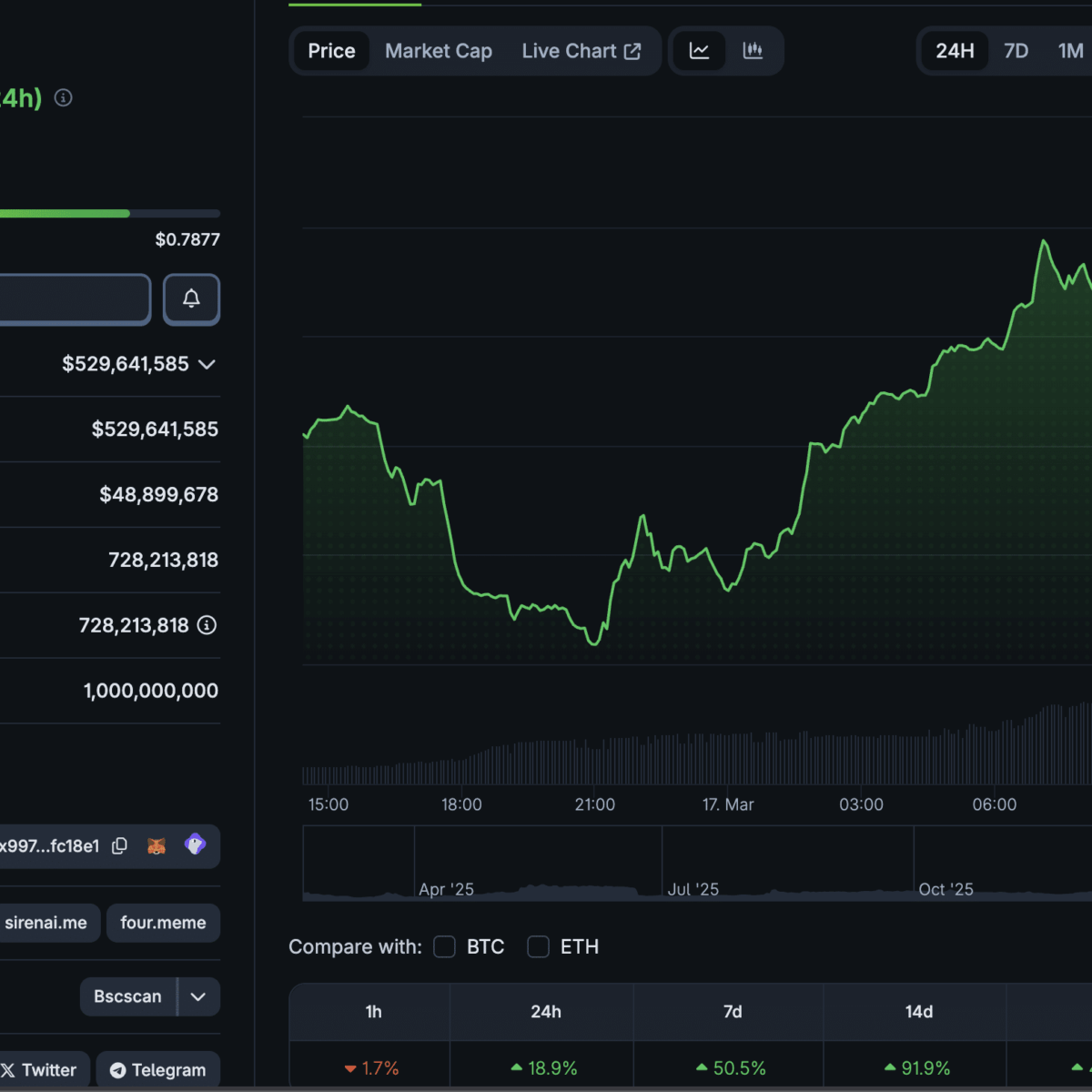 SIREN crypto has emerged as a standout performer in a choppy market, surging above the $0.70 level while major caps struggle for direction. The BSC-based token is currently trading over $0.72, posting a volatile 24-hour performance that has seen it top daily gainer lists.